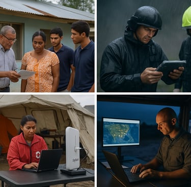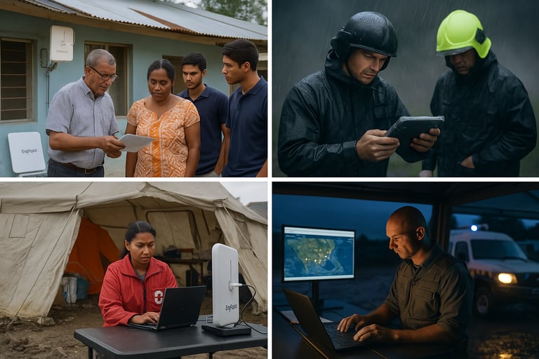 Supports early-warning systems, evacuation coordination, clinic communication, community hubs, logistics, fleet operations and remote command centres.